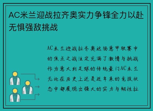 AC米兰迎战拉齐奥,这场意甲联赛中的焦点...